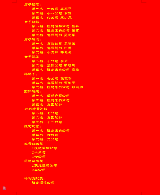 为举办好集团首届职工运动会,集团成立了赛事组委会,并结合职工实际特点设计比赛项目,制定了规范的竞赛规则,组建了筹备组、大赛仲裁组、大赛会务组、裁判组和安全后勤保障组等相关工作组保障运动会各项工作的顺利开展。