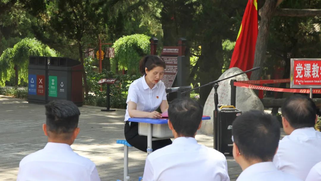在大槐树下,集团总部第二党支部书记王小颖为全体党员讲授《渭华起义革命精神的丰富内涵》专题党课。通过上党课,大家对渭华起义在当时时代背景下所产生的重大意义有了更深层次的认识,同时深刻感受了老一辈革命家无私奉献的革命精神。